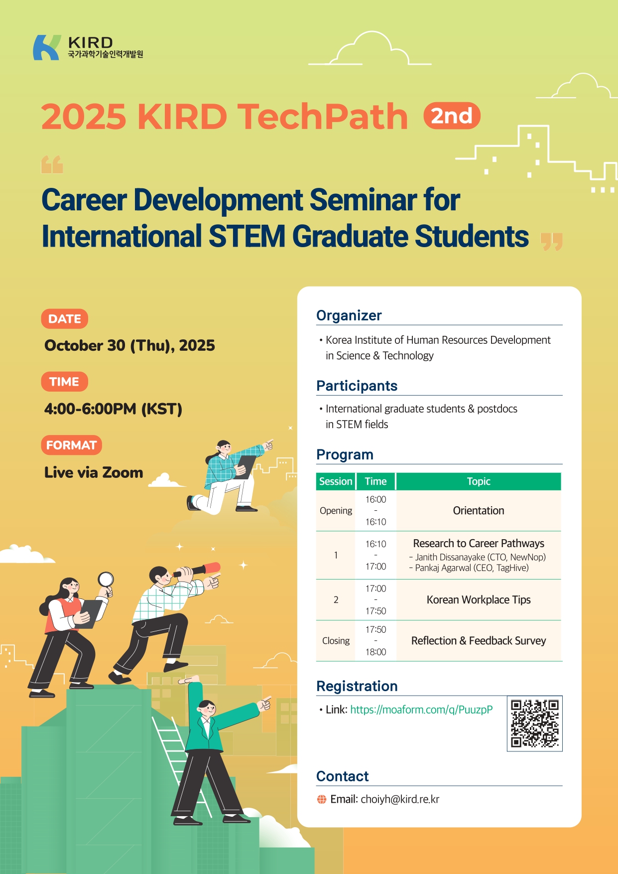 [Online Seminar] 2025 KIRD TechPath: Career Development Seminar for International STEM Graduate Students