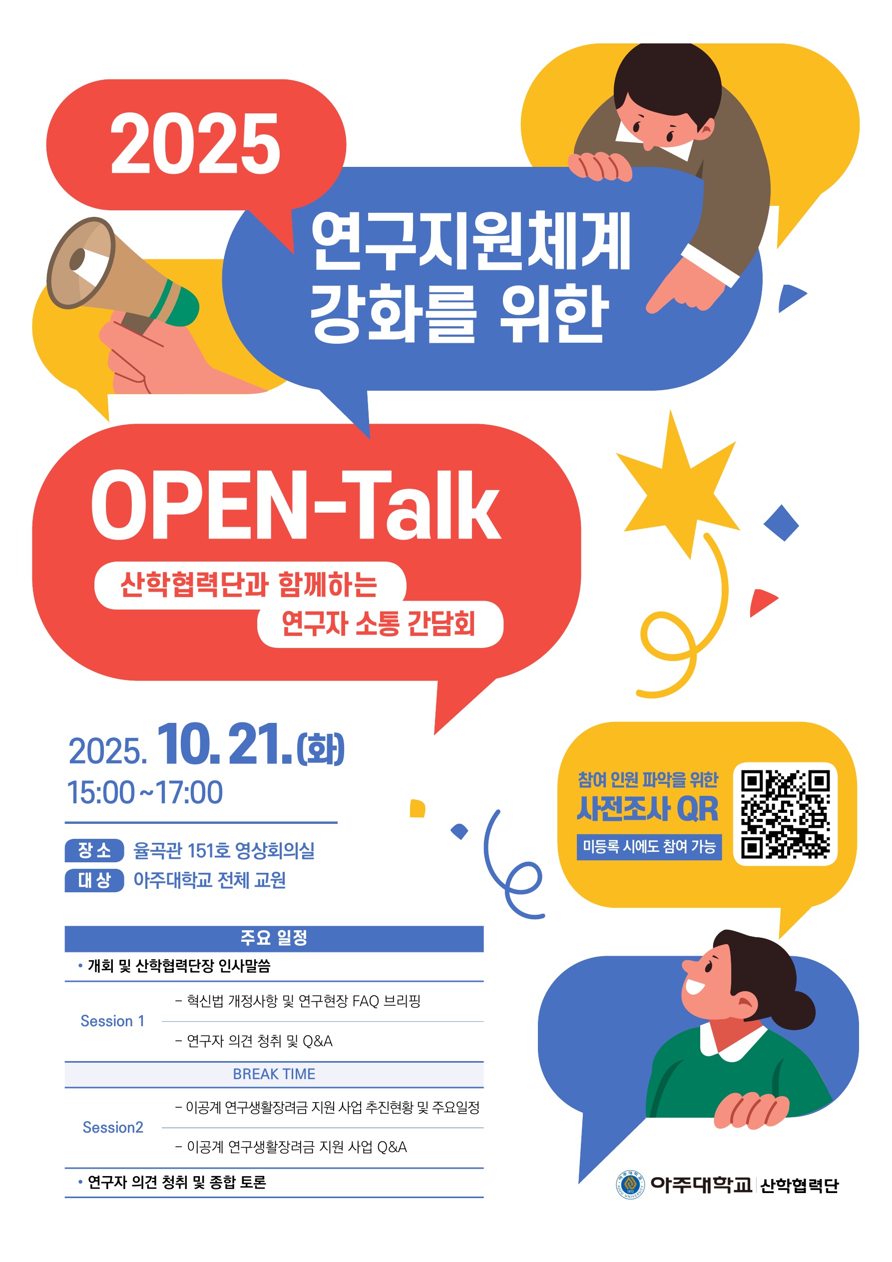 [행사] (당일재공지) [교원대상간담회] 2025 연구지원체계 강화를 위한 OPEN-Talk 개최 안내(오후3시~)
